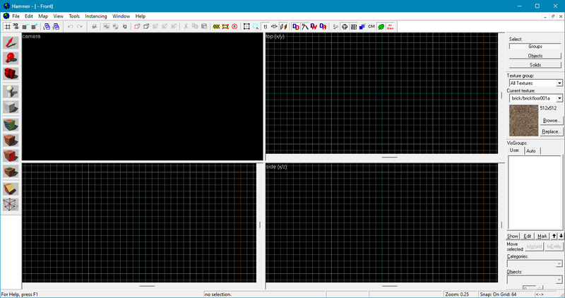 Main view (with a map open) in Half-Life 2's Hammer Editor